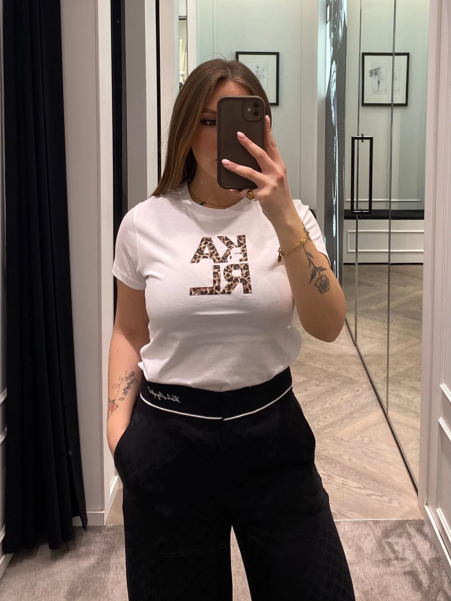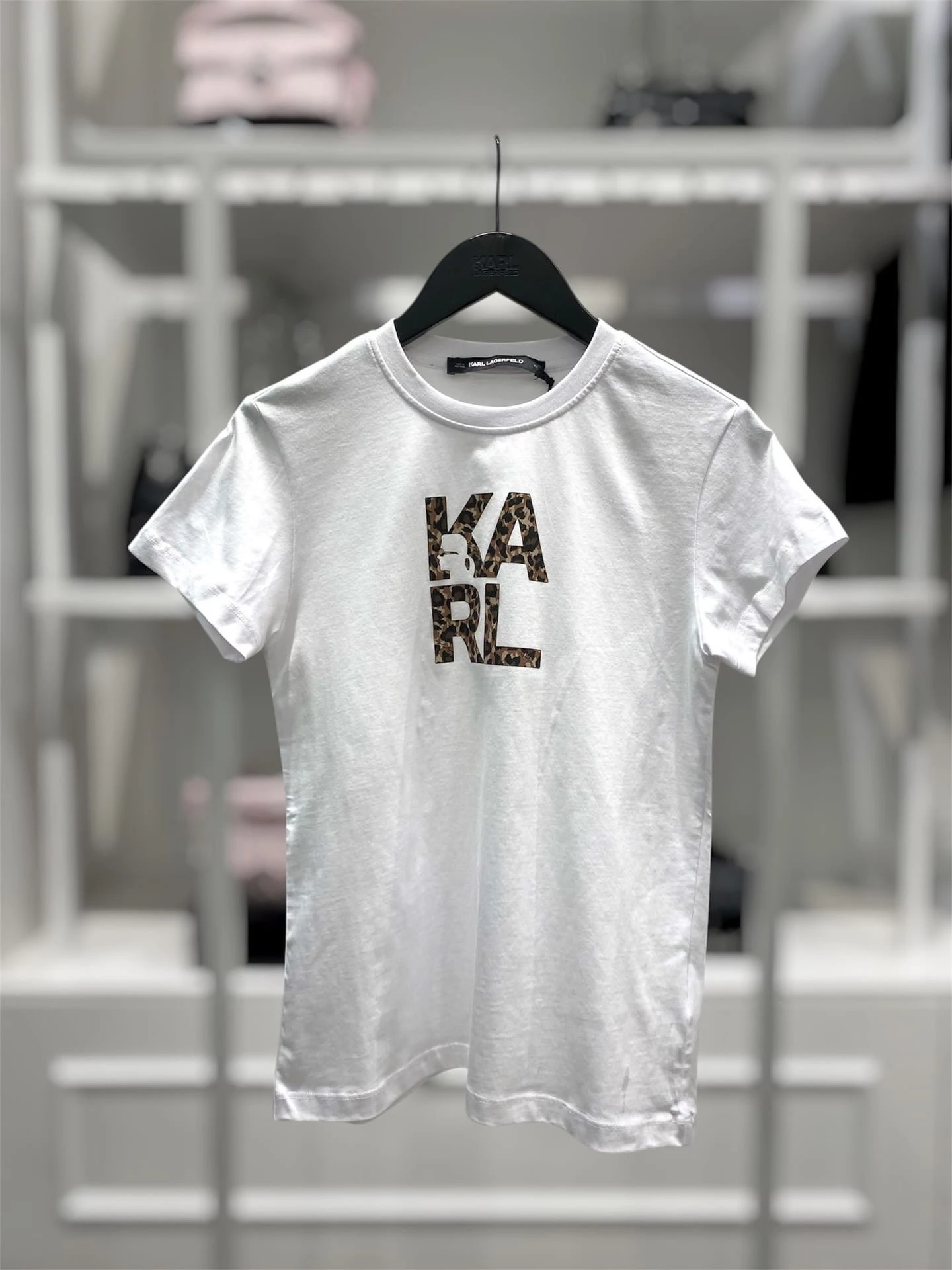 KARL LAGERFELD T-Shirt Damski Leopard Block Logo