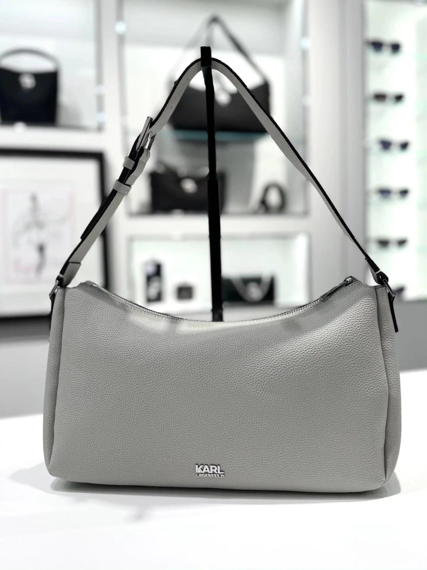 Karl Lagerfeld IKON Pebble Large Shoulder Bag w szarym kolorze to elegancka i ponadczasowa torebka damska wykonana ze skóry naturalnej o groszkowej fakturze. Minimalistyczna forma, subtelne metalowe logo IKON oraz wygodny, regulowany pasek sprawiają, że model doskonale sprawdza się na co dzień. Torebka jest lekka, funkcjonalna i pochodzi bezpośrednio od producenta.