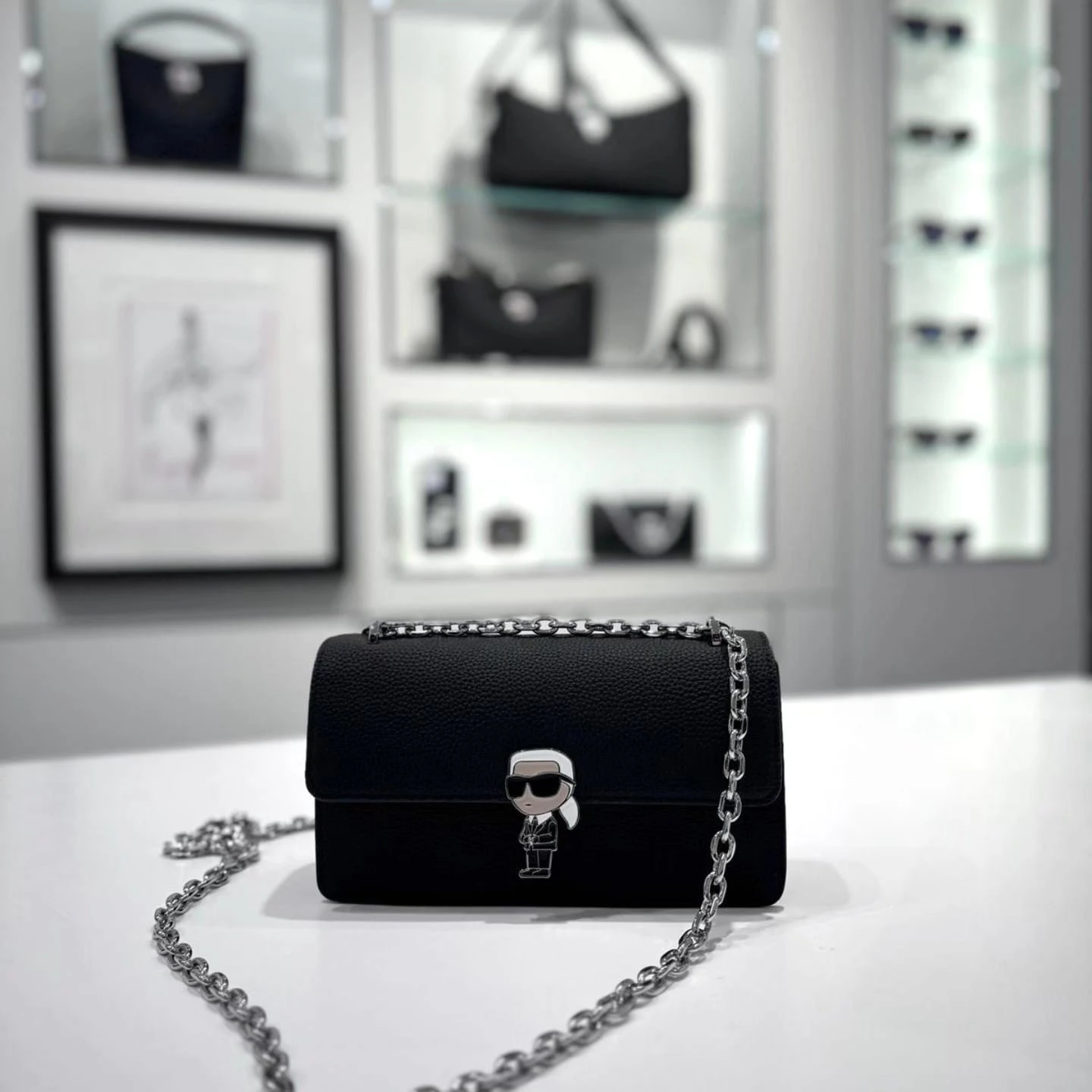Karl Lagerfeld IKON Pebbled Wallet on Chain to kompaktowa i stylowa torebka na łańcuszku, zaprojektowana z myślą o kobietach, które cenią minimalizm i wygodę. Czarny kolor nadaje jej eleganckiego, uniwersalnego charakteru, dzięki czemu świetnie sprawdzi się zarówno na wyjścia, jak i na co dzień.