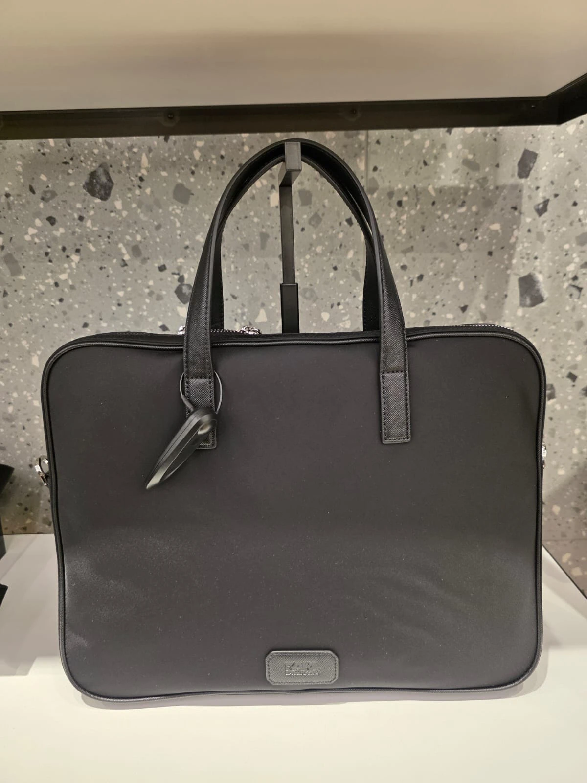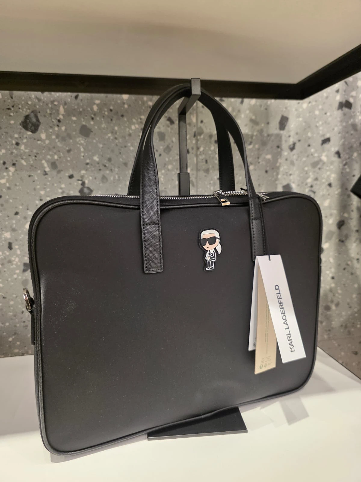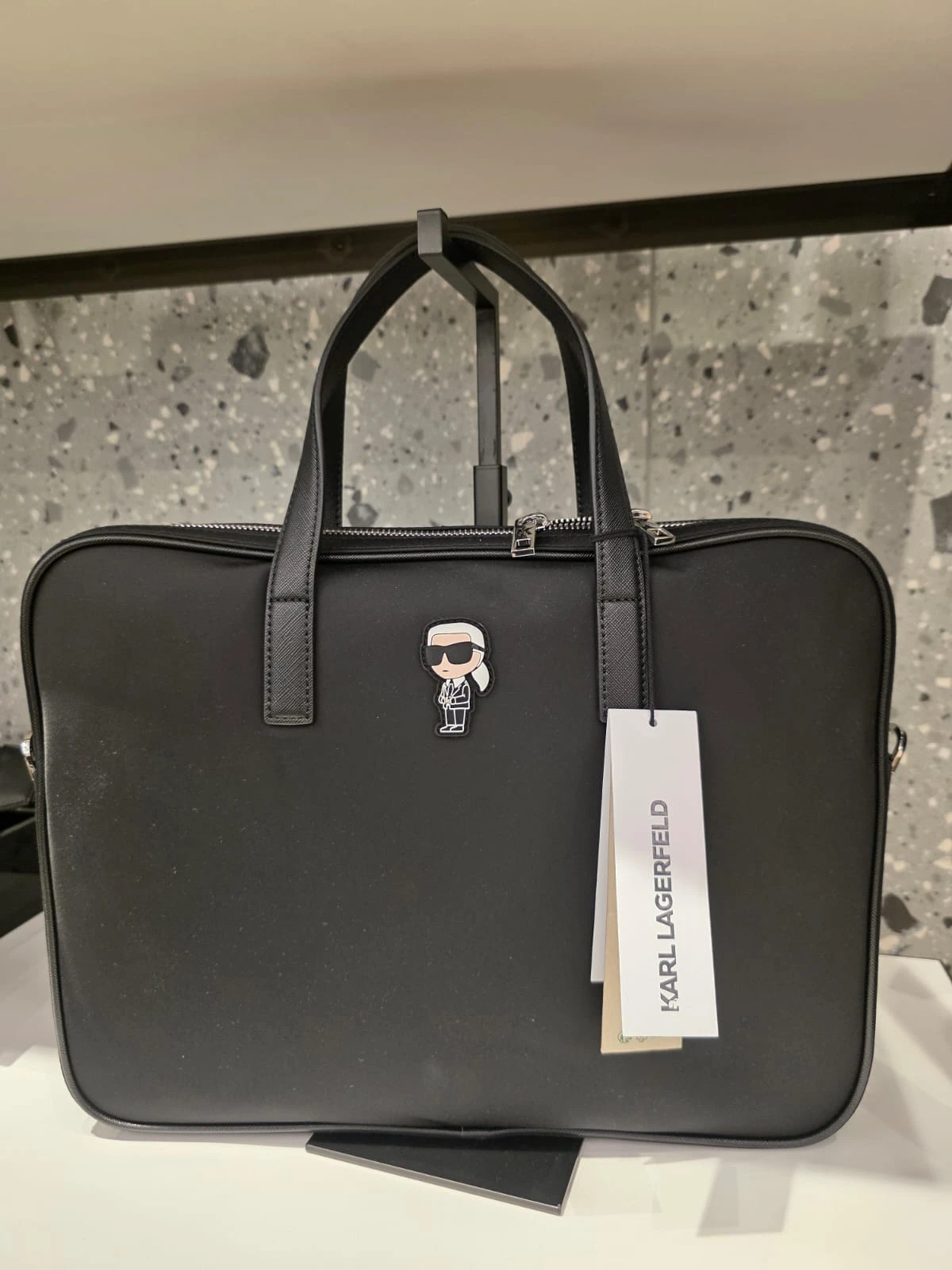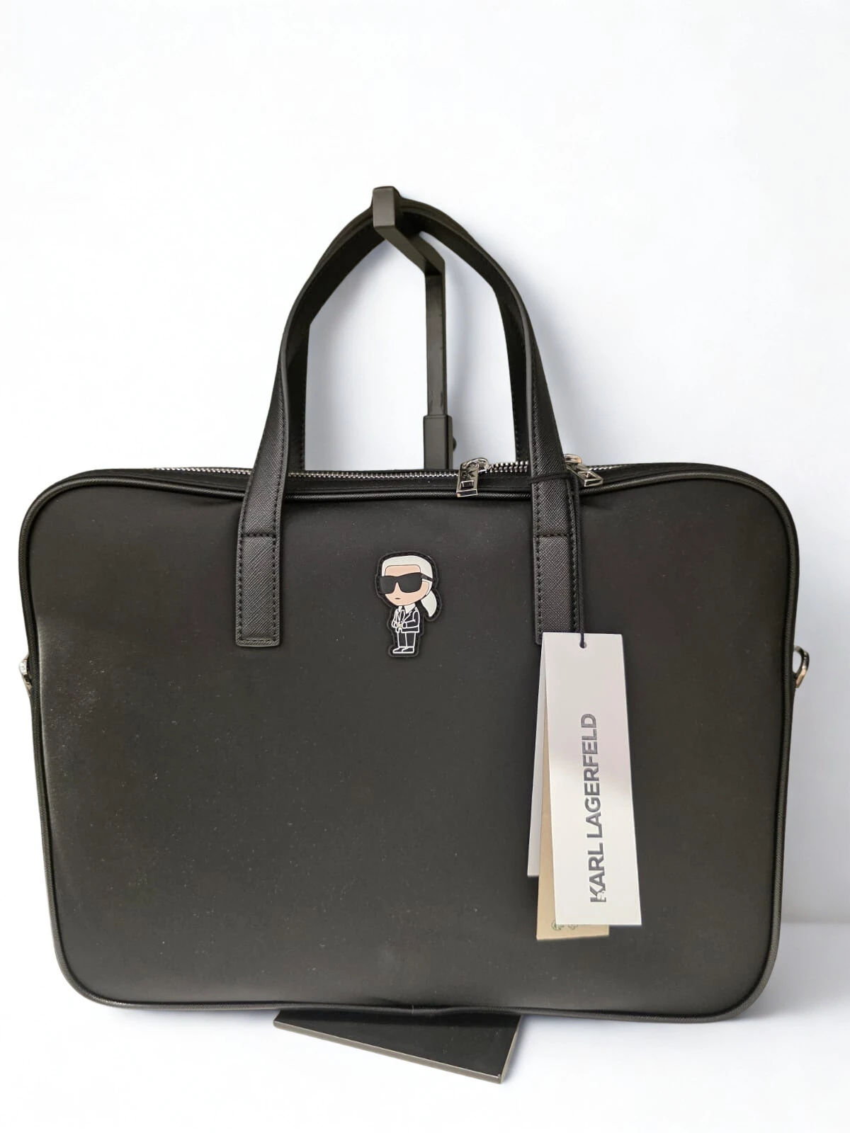 Elegancka torba na laptopa Karl Lagerfeld z linii Ikon, wykonana z nylonu w klasycznym czarnym kolorze. Minimalistyczna forma została uzupełniona charakterystyczną aplikacją Ikonik Karl, dzięki czemu model łączy funkcjonalność z rozpoznawalnym stylem marki. Produkt pochodzi bezpośrednio od producenta, z dystrybucji europejskiej.