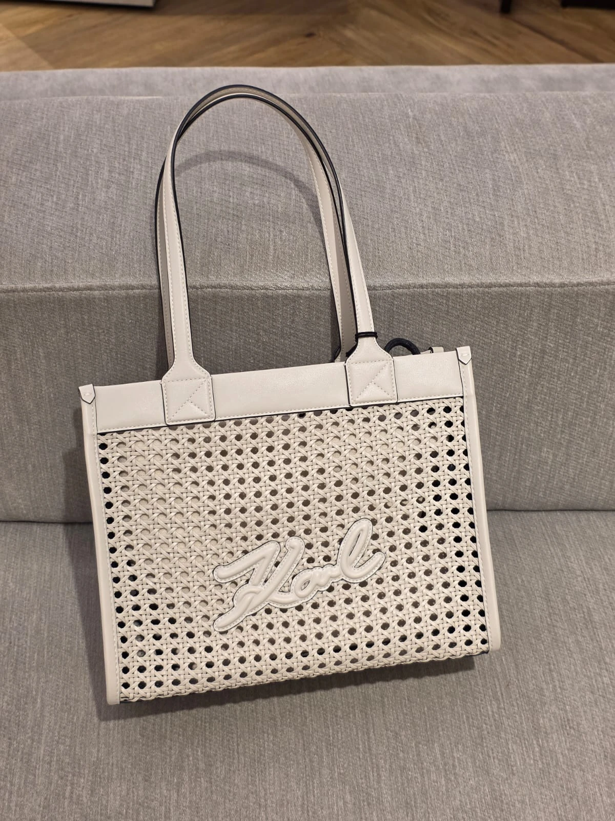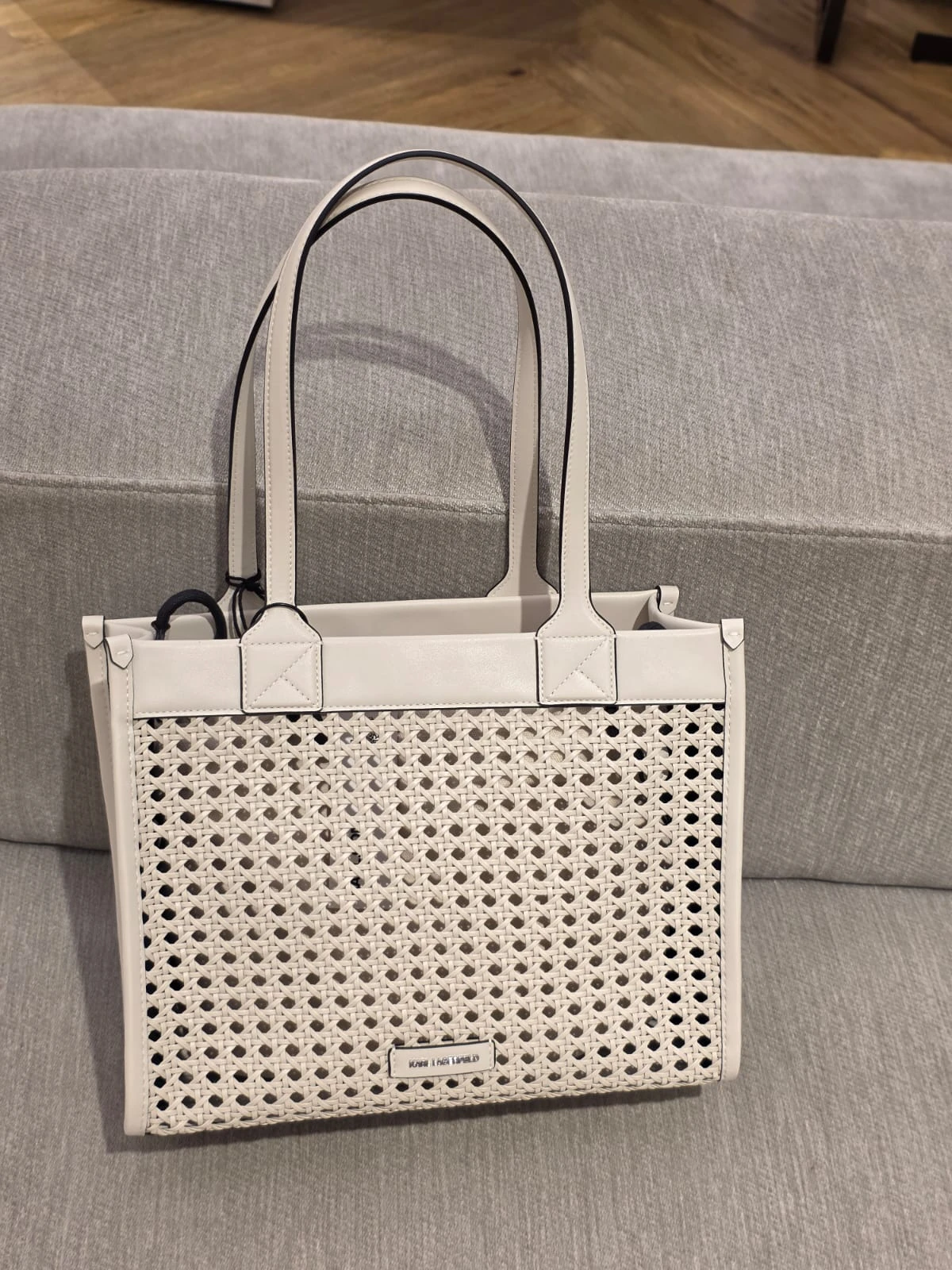Karl Lagerfeld K/Square MD Tote Woven to elegancka torebka damska o lekkiej, nowoczesnej formie i wyjątkowej plecionej strukturze. Jasny, kremowy odcień pięknie wpisuje się w wiosenne i letnie stylizacje, a minimalistyczny fason sprawia, że model prezentuje się stylowo zarówno na co dzień, jak i podczas wyjazdów czy spotkań.