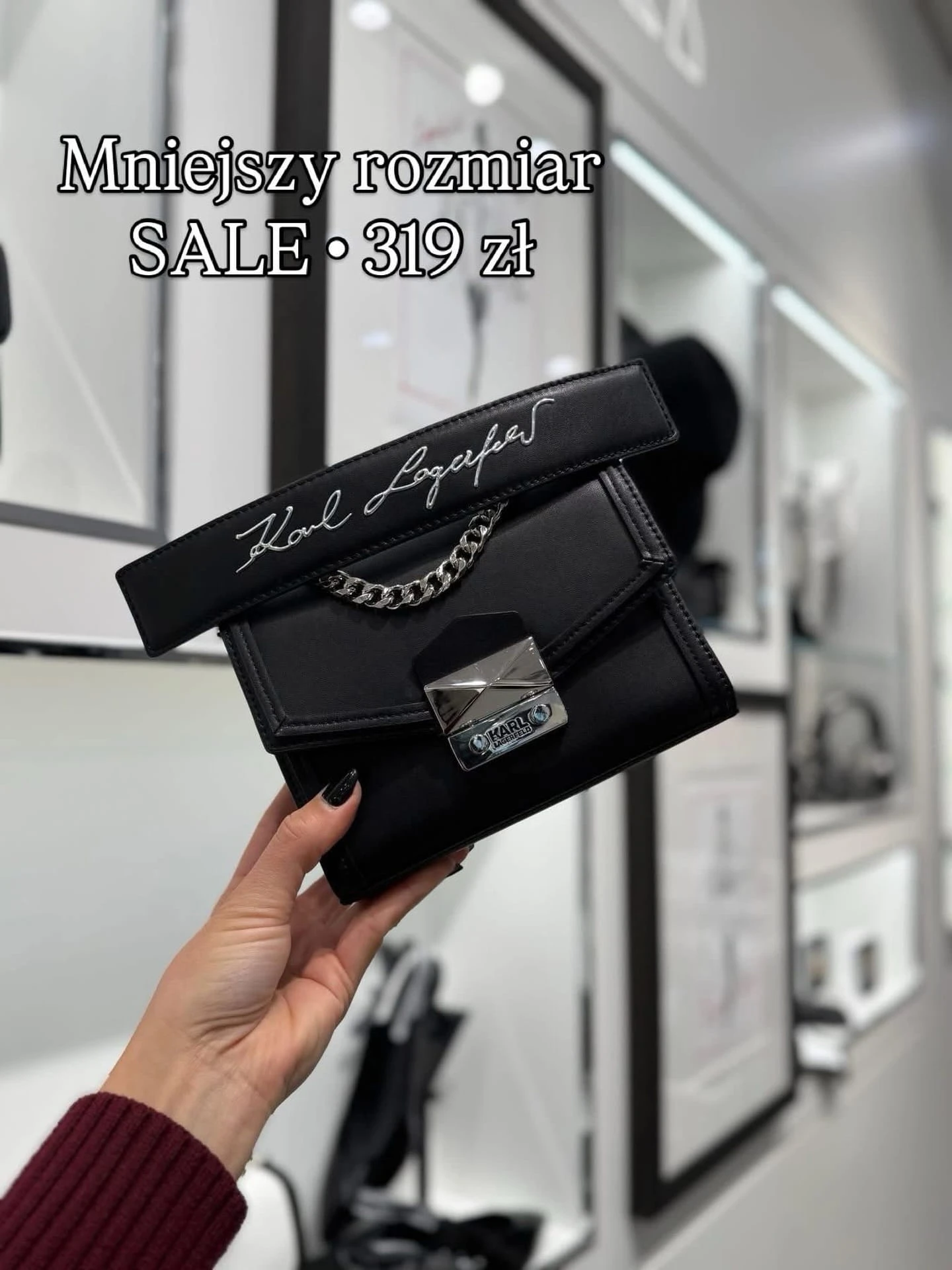 EN: 100% original Karl Lagerfeld product sourced directly from the manufacturer. Compact crossbody bag with adjustable chain strap and elegant black finish.