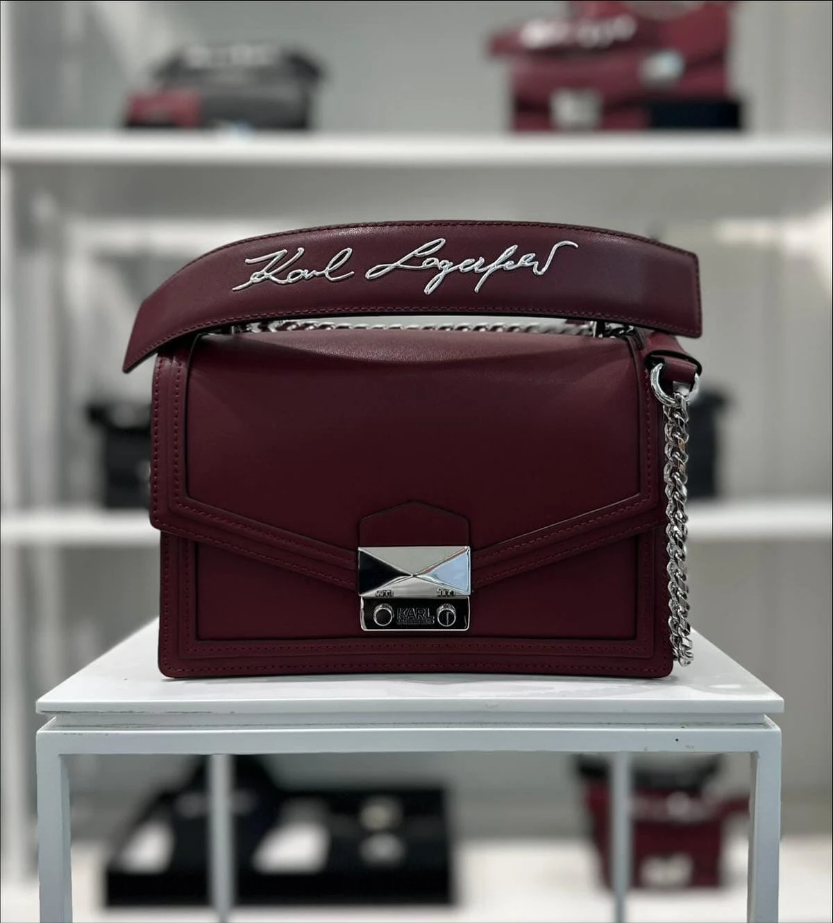 Elegancka i wyrazista torebka Karl Lagerfeld K/Style w bordowym kolorze, wykonana ze skóry naturalnej. Zgrabna forma, srebrne detale, łańcuszek oraz ozdobna rączka sprawiają, że model doskonale sprawdza się zarówno na co dzień, jak i na wyjścia.