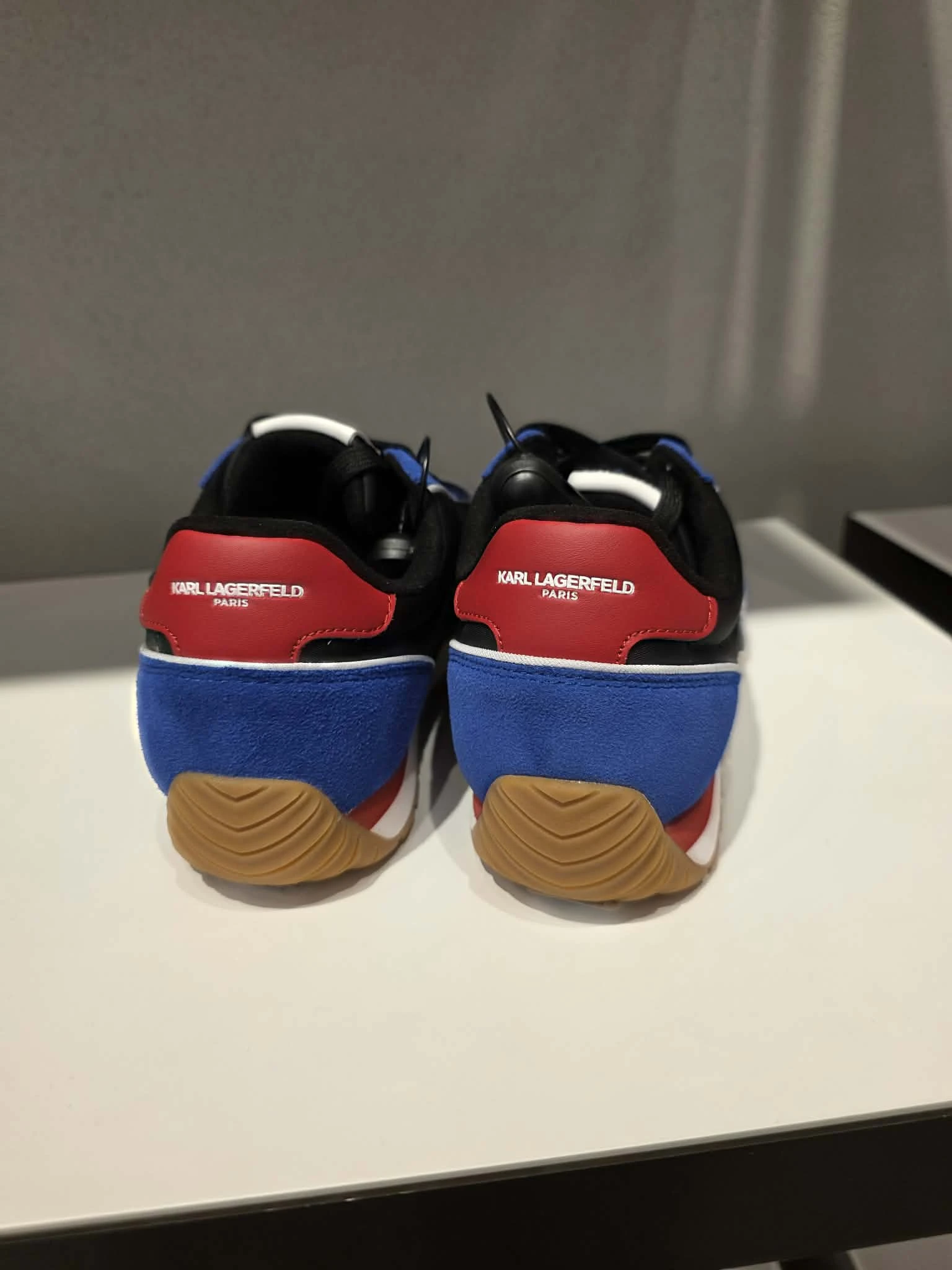 Sneakersy Karl Lagerfeld Rue St Guillaume Runner w dynamicznej kolorystyce czerni, niebieskiego i czerwieni.