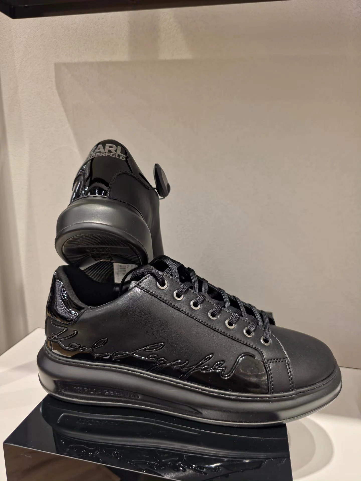 Męskie KARL LAGERFELD Kapri Signature Line Sneakers Skórzane Czarny