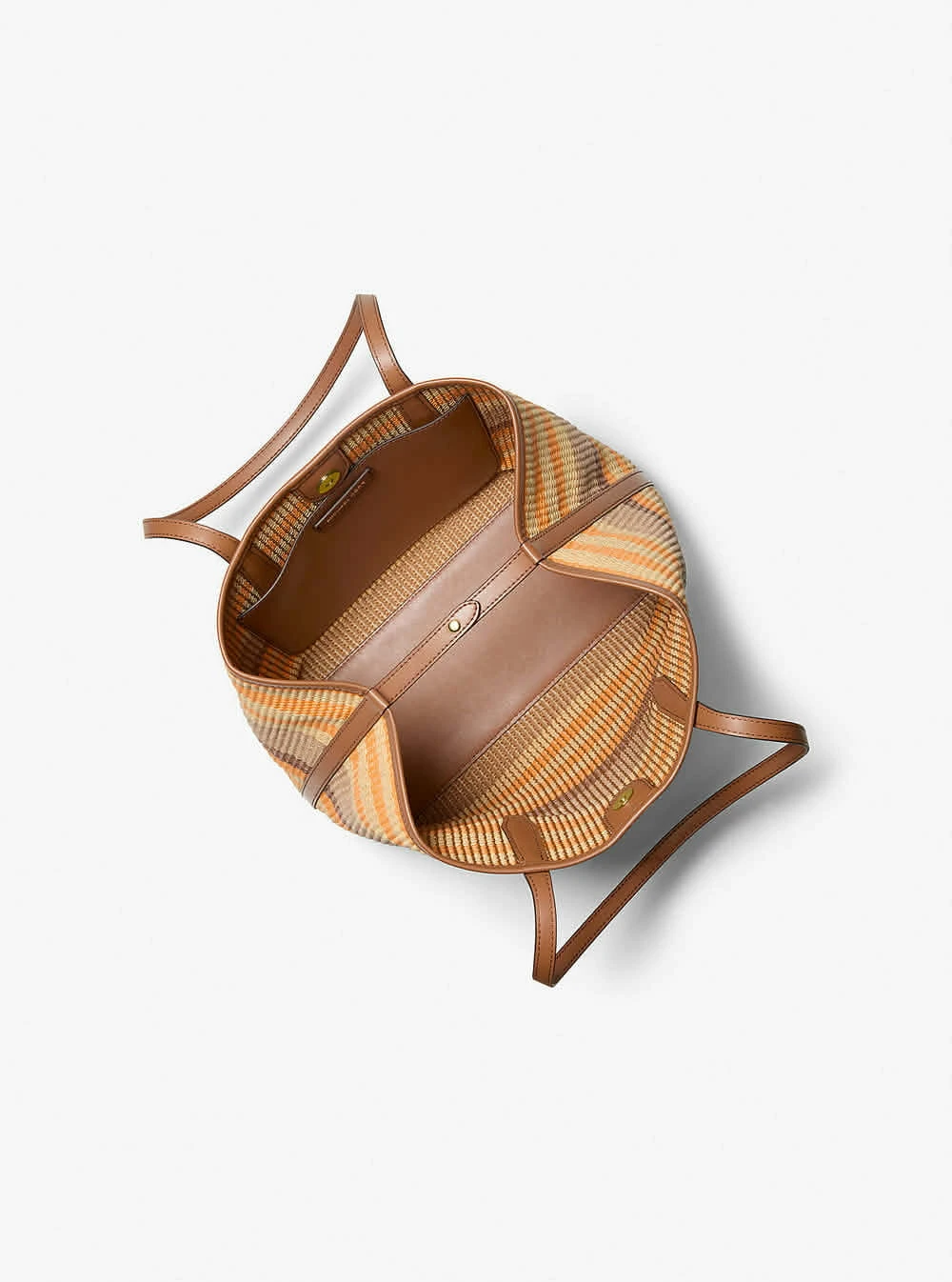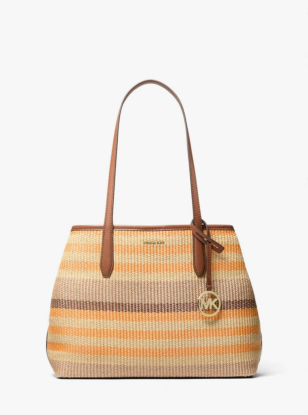 Michael Kors Avalon Medium Striped Woven Tote Bag Luggage Multi
