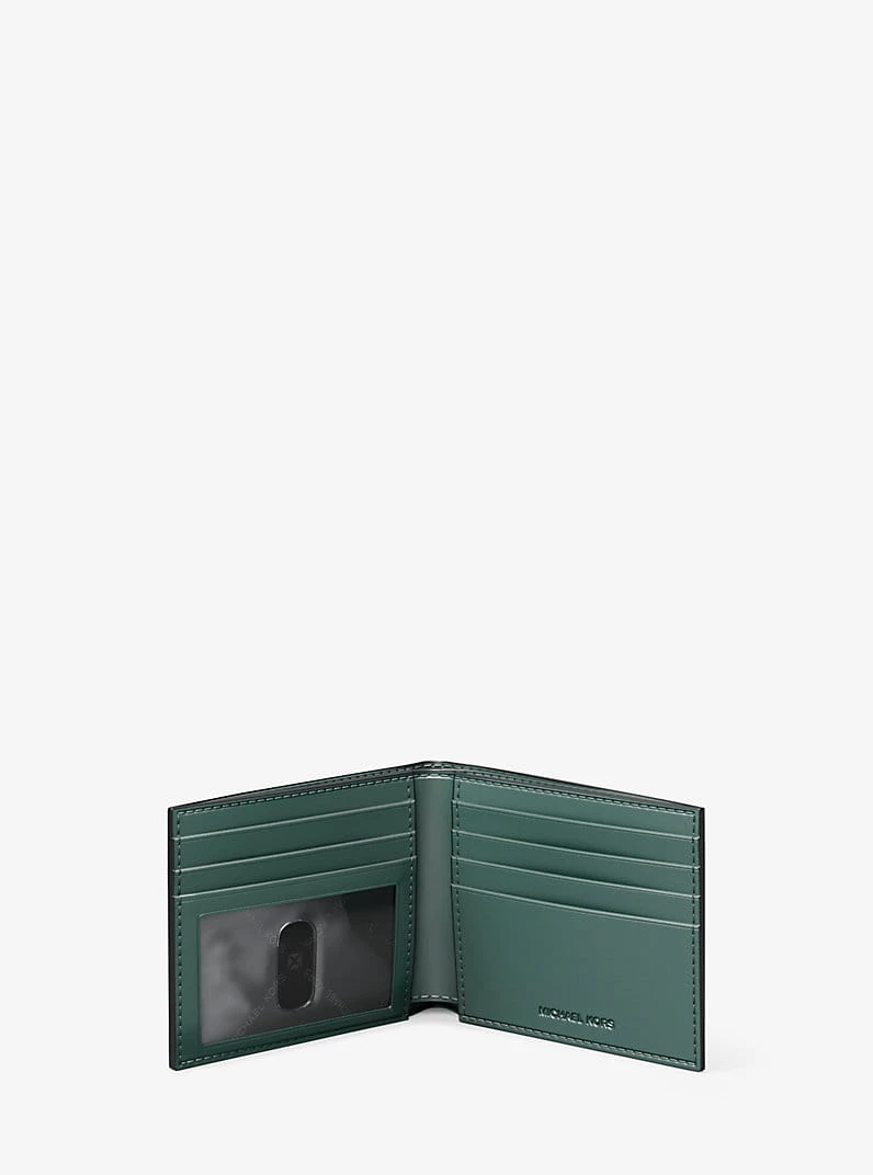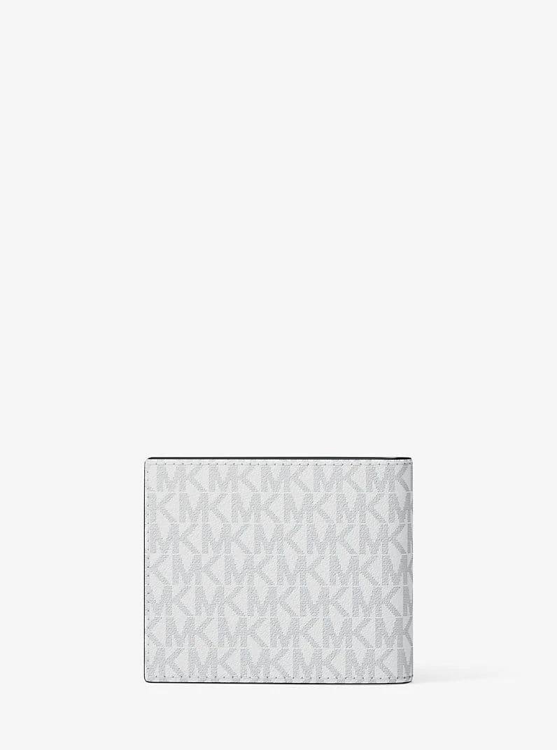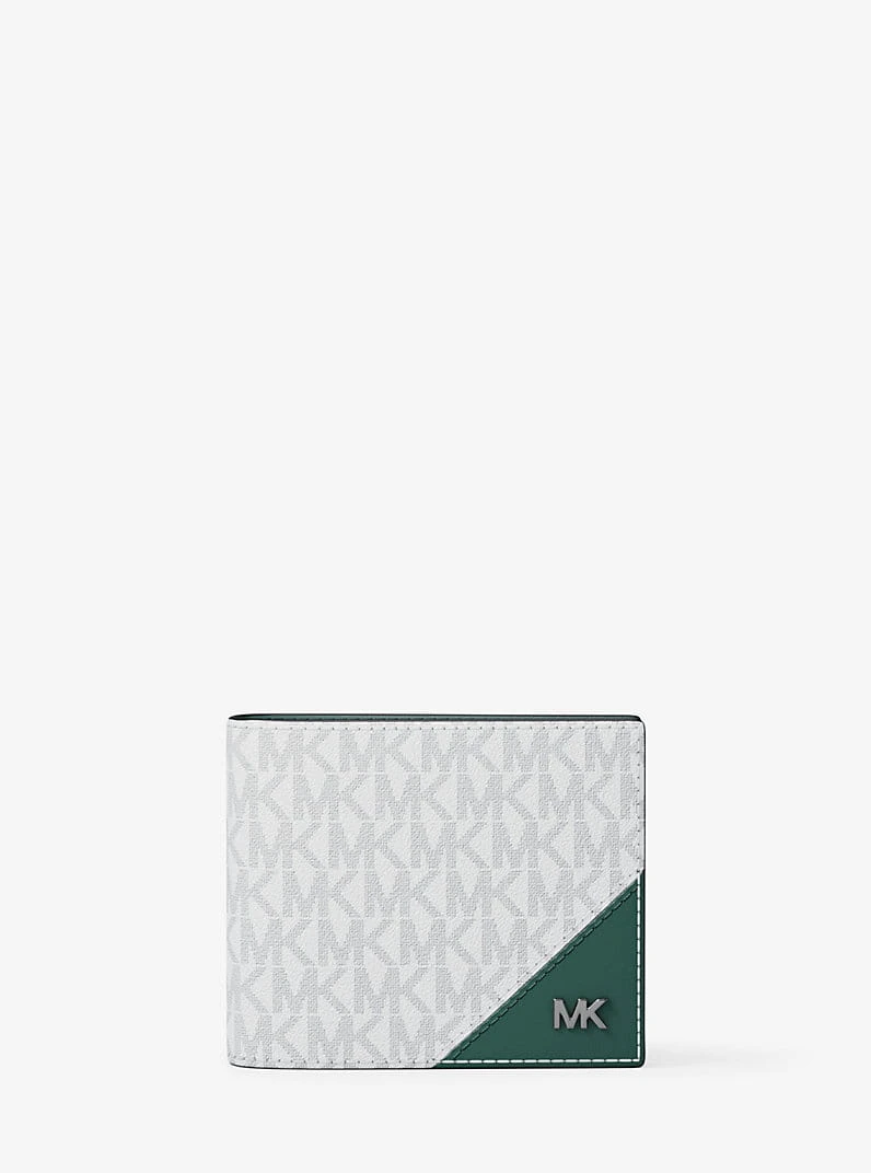 Nowoczesny portfel Michael Kors w kompaktowym formacie billfold, wykonany z logowanego canvasu w jasnej kolorystyce z kontrastowym zielonym wykończeniem. Stylowe połączenie bieli, subtelnego monogramu MK i ciemnozielonych detali sprawia, że model prezentuje się elegancko, świeżo i bardzo nowocześnie. Praktyczne wnętrze z miejscem na karty, dokument oraz banknoty sprawdzi się idealnie na co dzień.