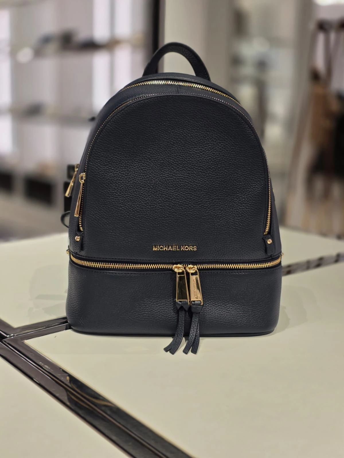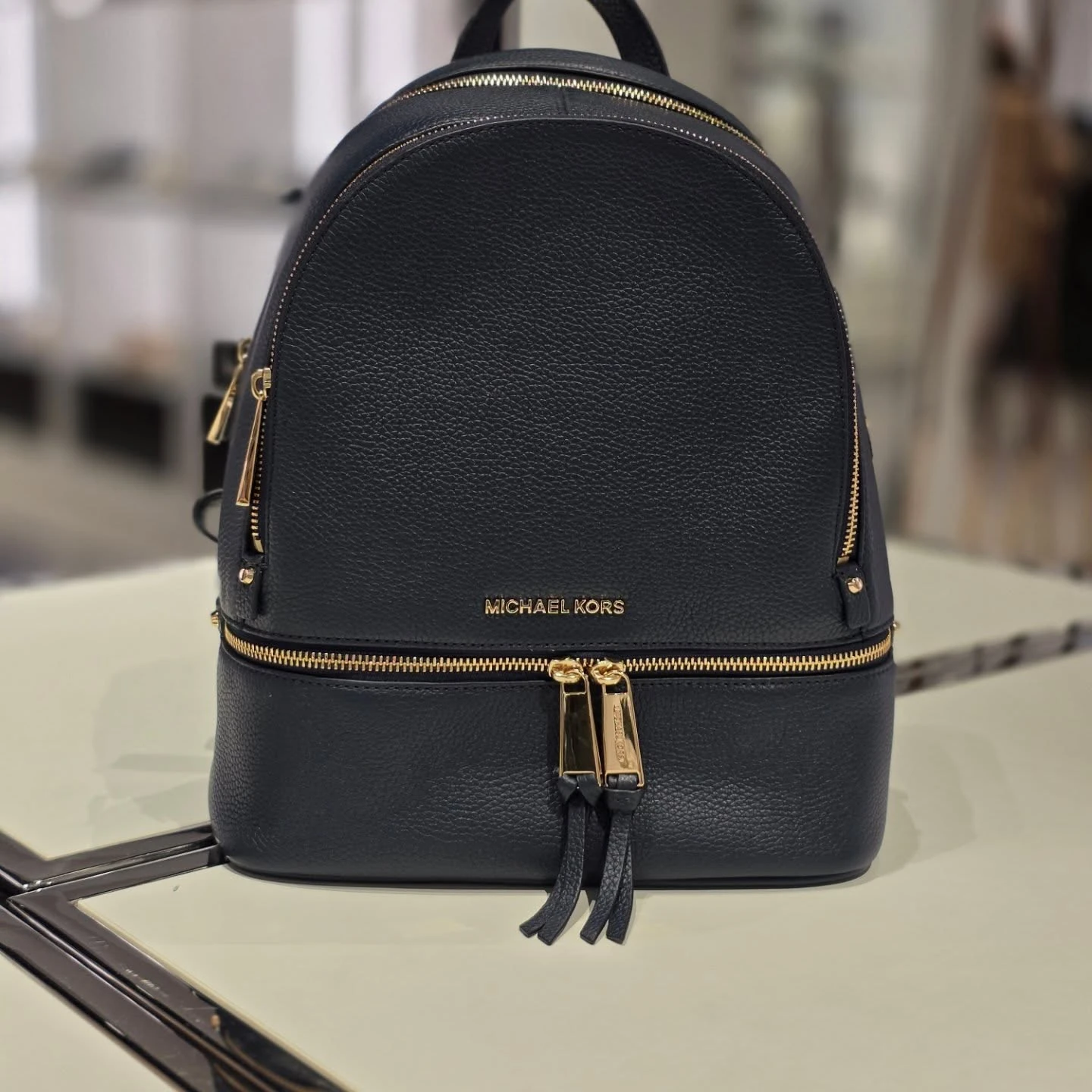 Michael Kors Rhea Zip Medium to elegancki, średni plecak wykonany ze skóry naturalnej, idealny na co dzień. Model z regularnej kolekcji wyróżnia się osobnymi literkami logo, praktycznym wnętrzem z organizerem oraz wygodnymi, regulowanymi szelkami.
