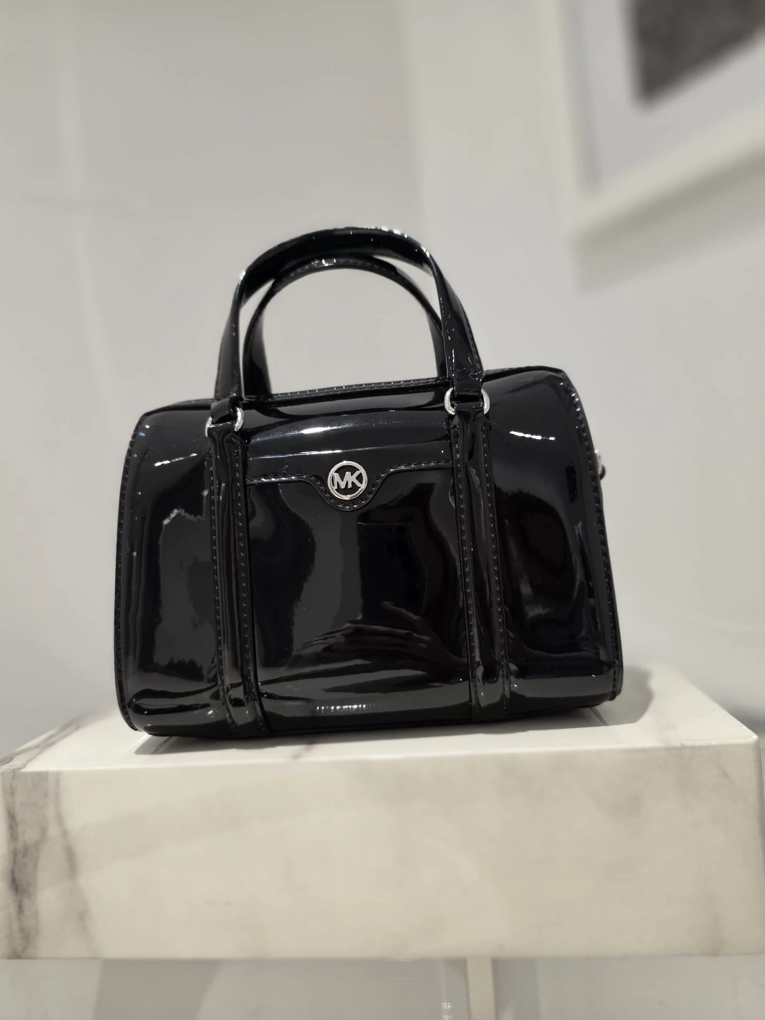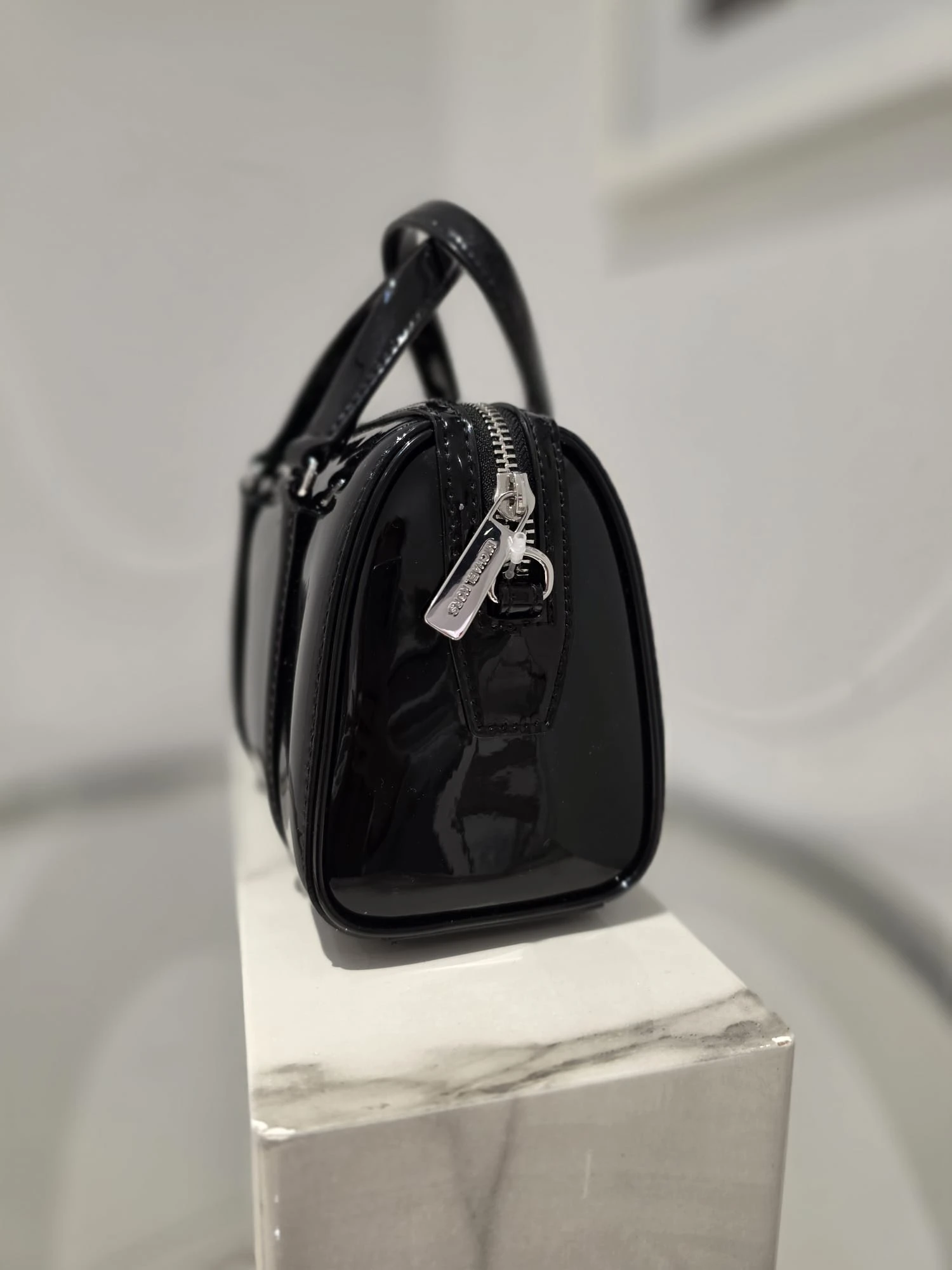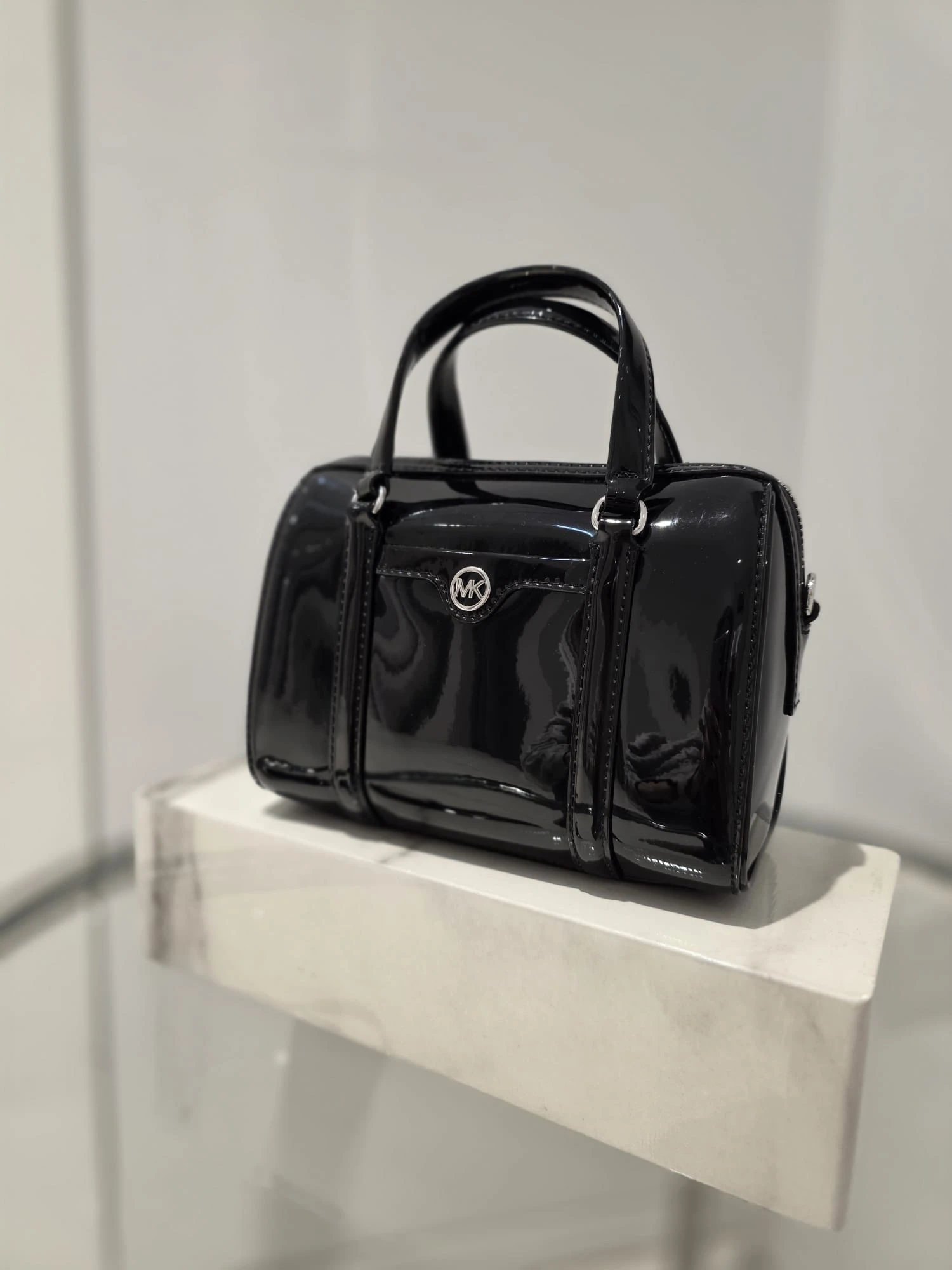 Michael Kors Travel Small Duffle Xbody Czarna Lakierowana Torebka Mini Duffle Silver – Cudny Butik