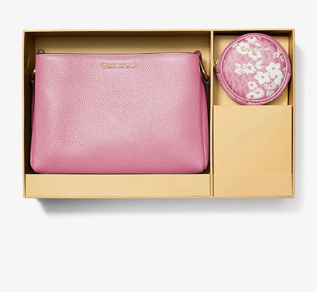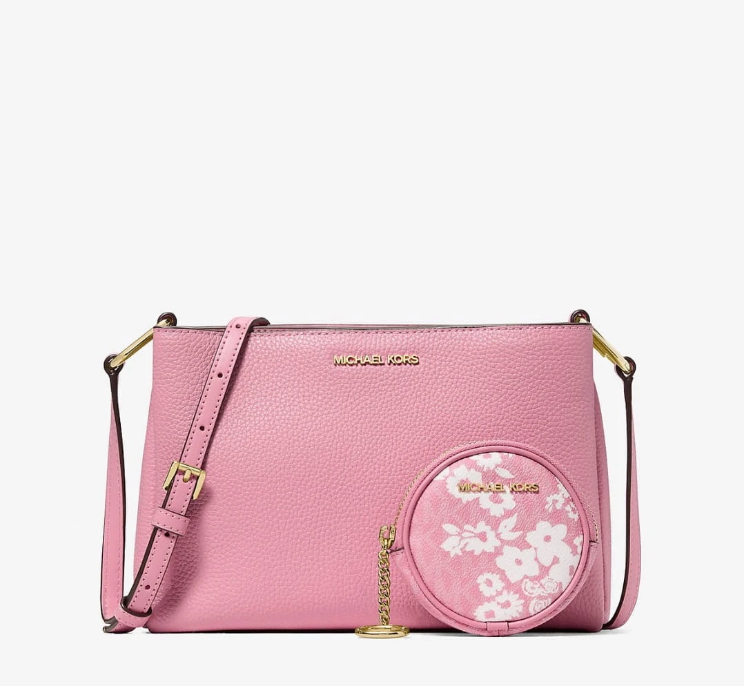 Michael Kors Trisha Pebbled Leather Crossbody Bag With Pouch – Pink + Box - Torebka