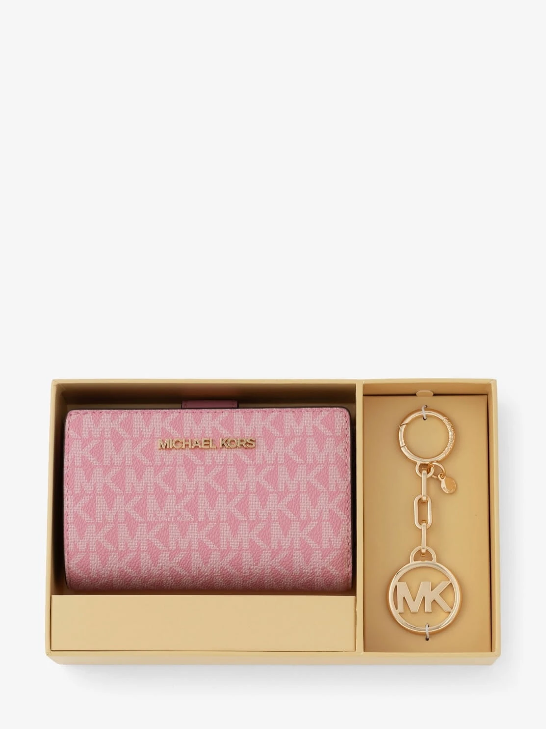Michael Kors Zestaw Prezentowy – Portfel Bifold + Brelok MK (Pink) Monogram