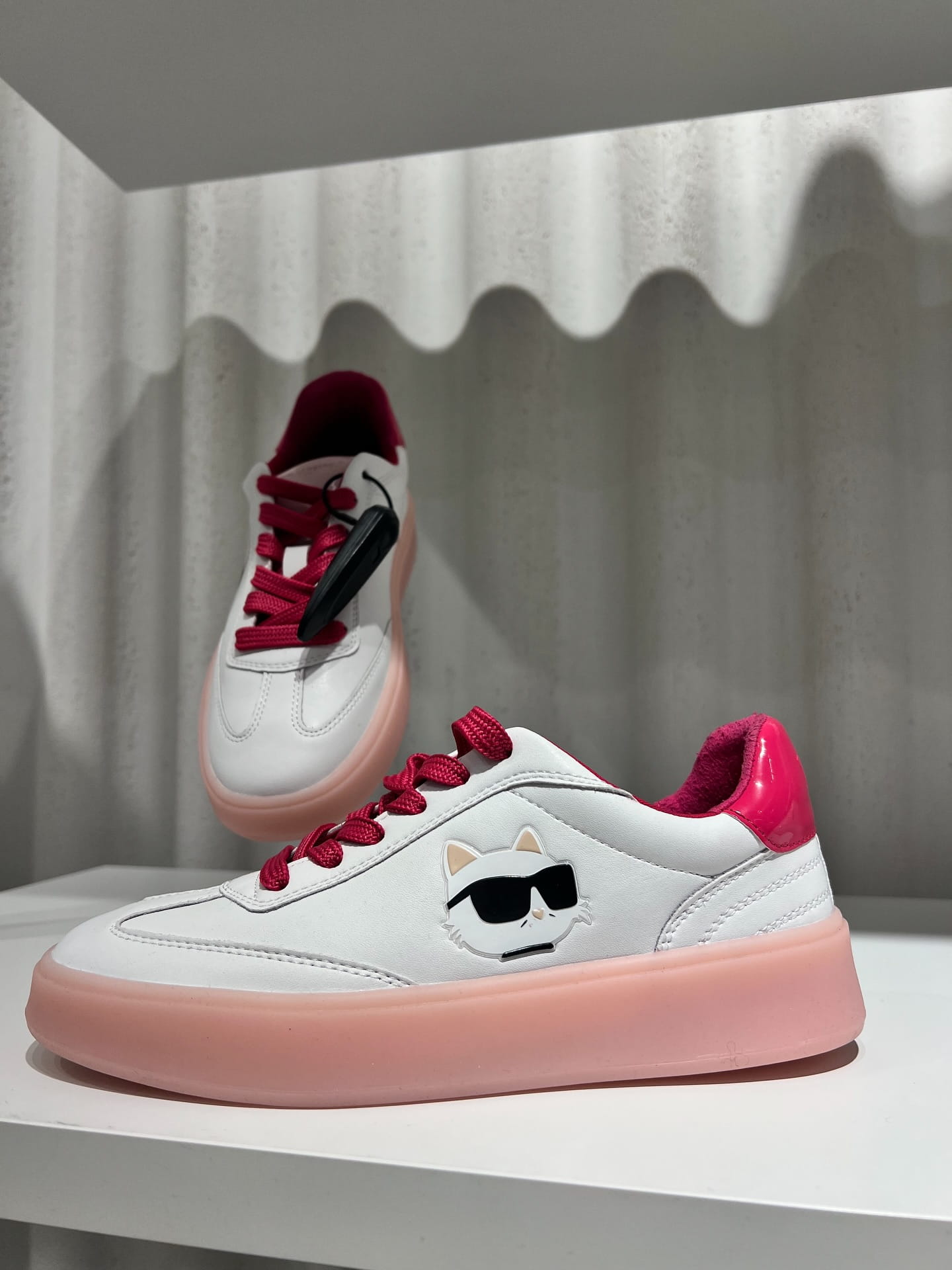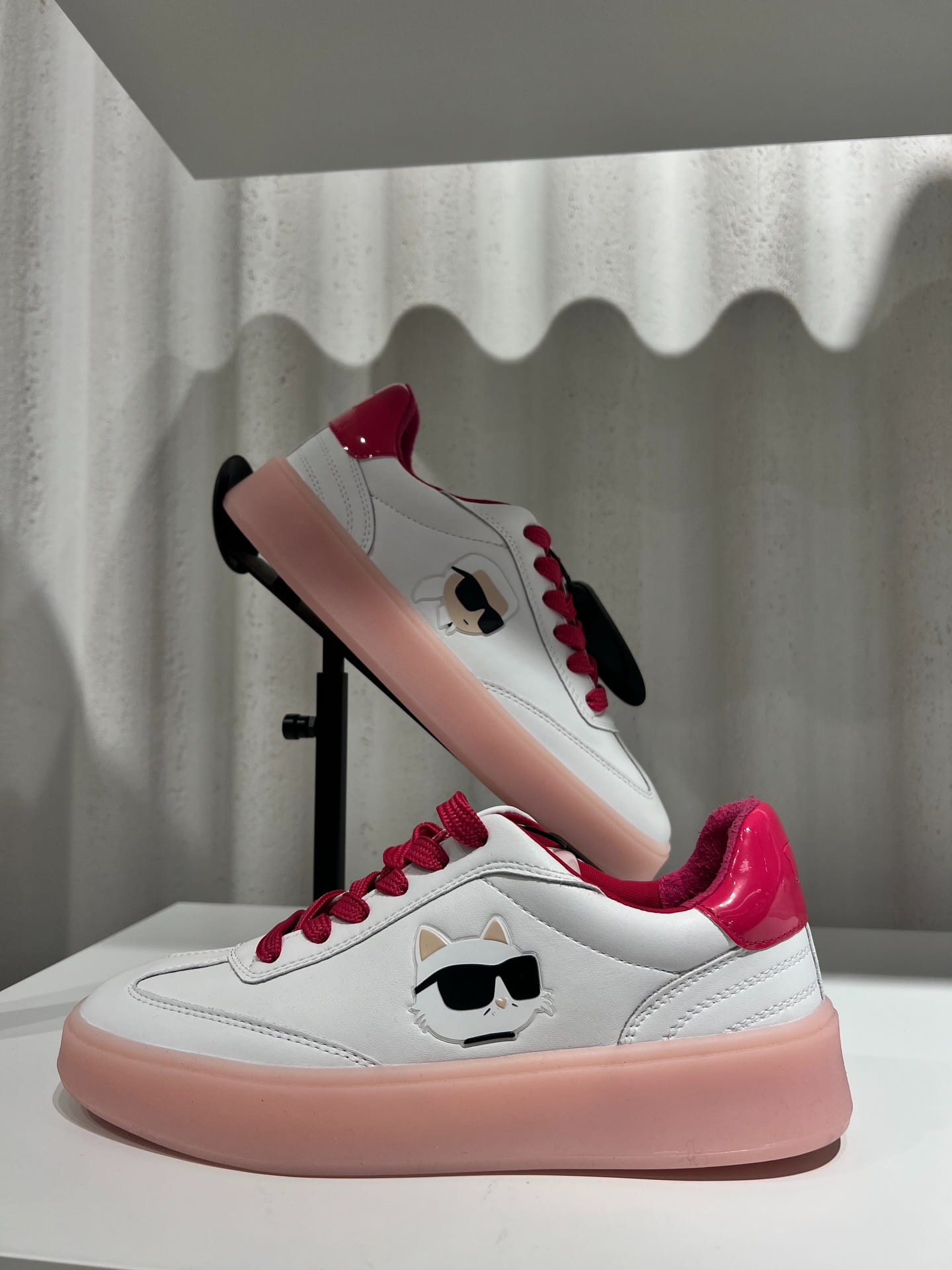 Sneakersy KARL LAGERFELD Ikon Kontrast Sneaker to stylowe połączenie minimalistycznej bieli z żywymi odcieniami różu i pastelową podeszwą. Model wyróżnia się nowoczesnym designem oraz wygodą noszenia, dzięki czemu doskonale sprawdzi się w codziennych stylizacjach. Wykonane ze skóry naturalnej, zapewniają trwałość, komfort oraz charakterystyczny styl marki Karl Lagerfeld.