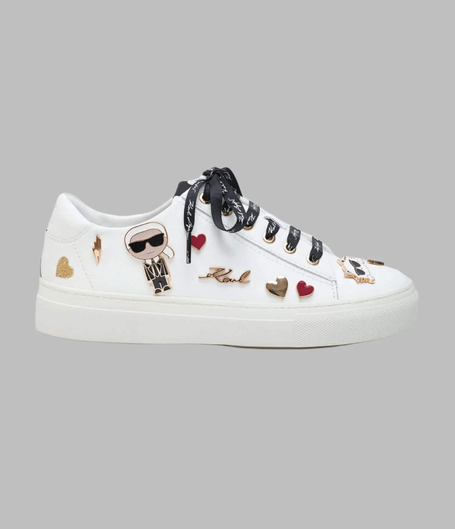 Information for international customers: Original KARL LAGERFELD leather sneakers with IKON pins, premium quality and everyday comfort.