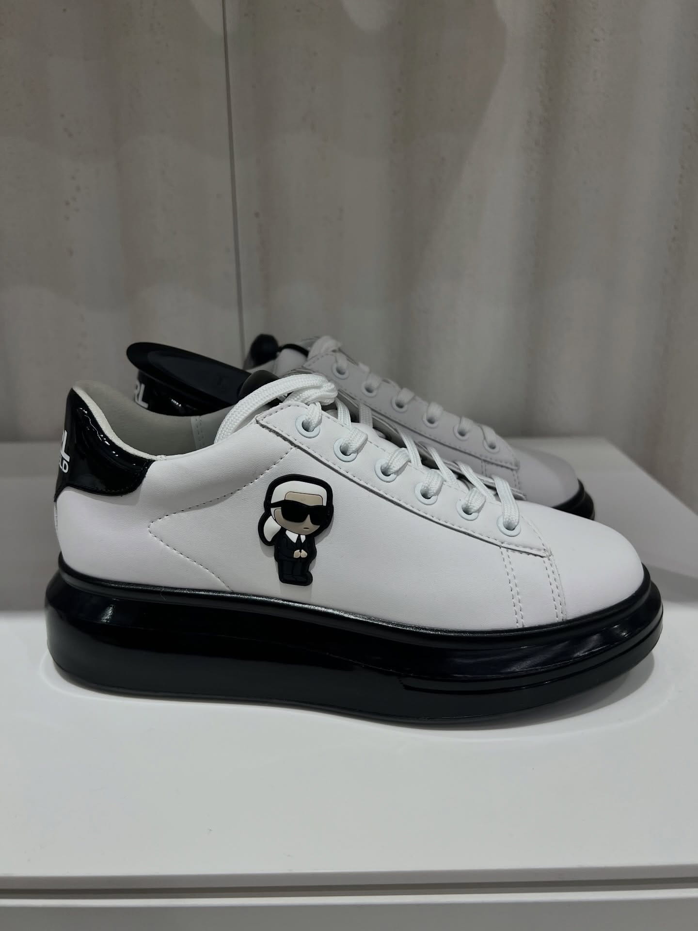 Sneakersy KARL LAGERFELD KAPRI KUSHION IKON LO LACE to połączenie miejskiego stylu, wygody i dopracowanych detali. Model wykonany z naturalnej skóry oraz wysokiej jakości tworzywa wyróżnia się czarną, sprężystą podeszwą typu „kushion” oraz kultowym motywem IKON z wizerunkiem Karla. To wygodne i stylowe obuwie na co dzień — idealne do jeansów, sukienek, spódnic i casualowych stylizacji.