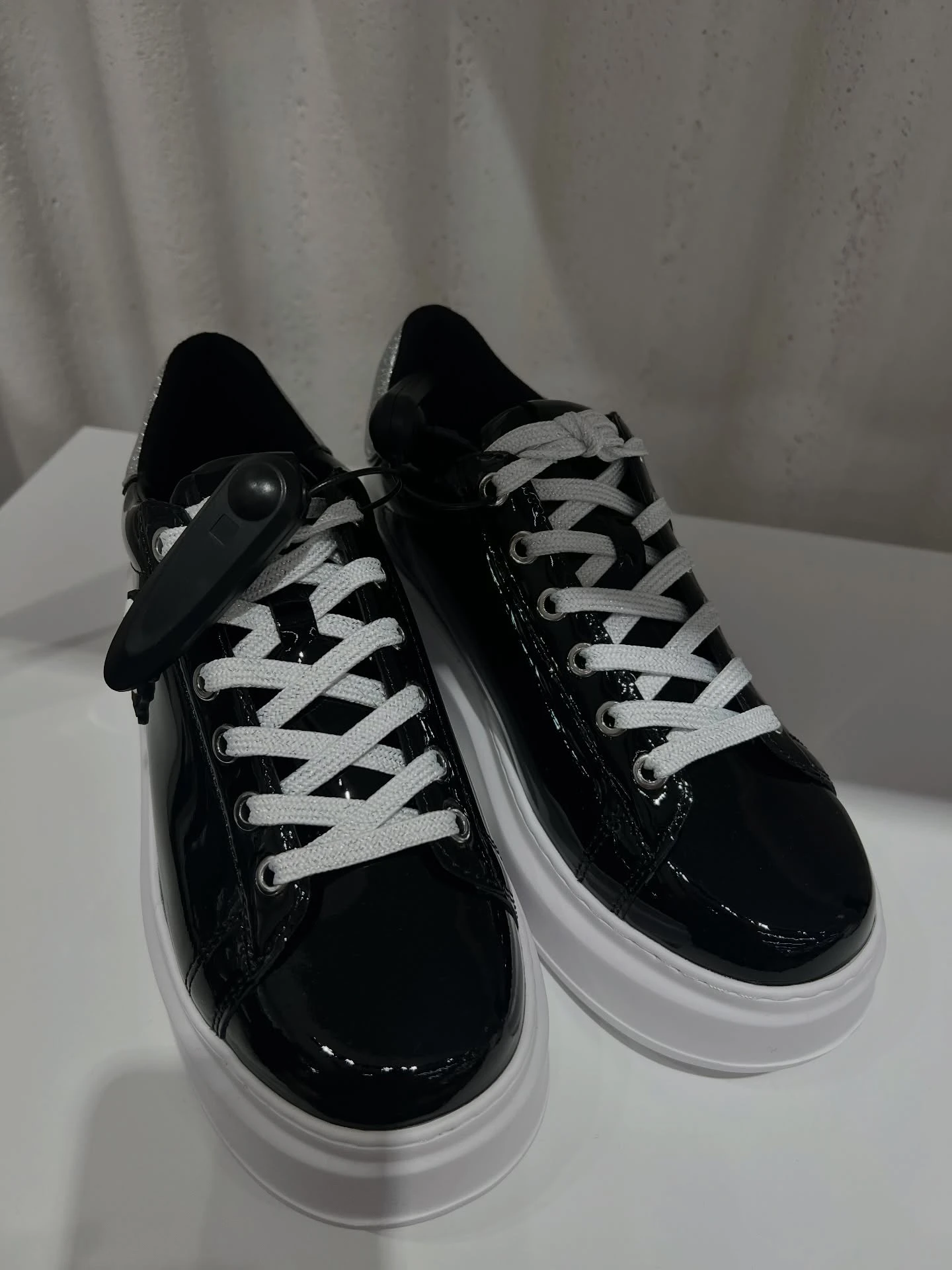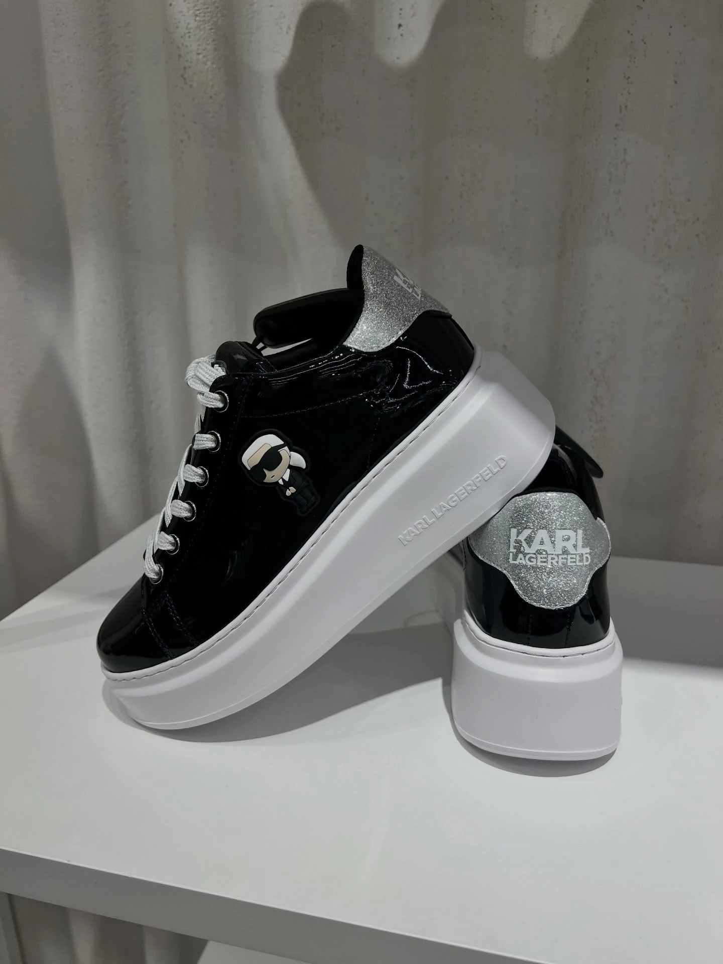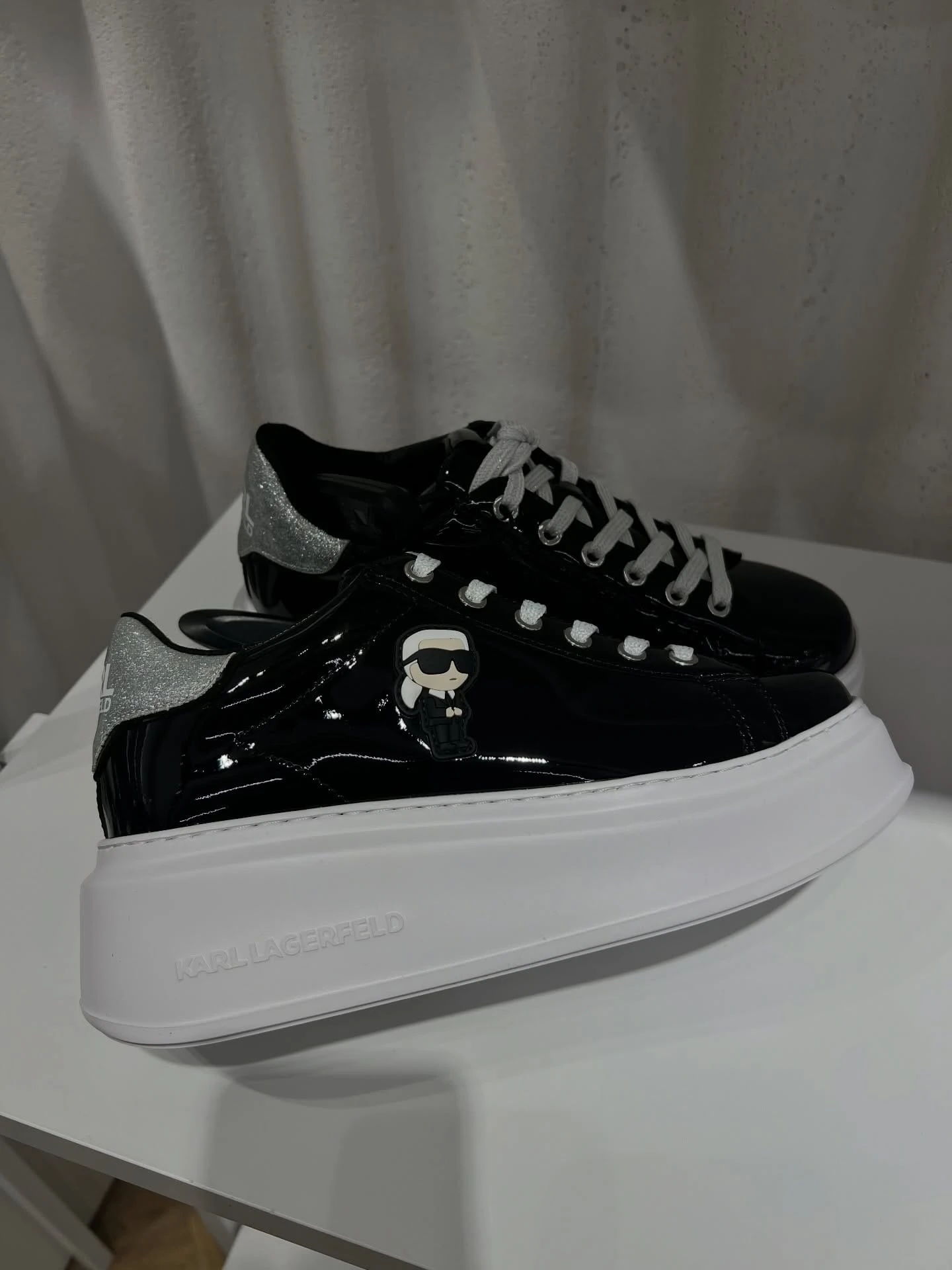Sneakersy Karl Lagerfeld Mega Kapri Ikon Karl to nowoczesny model z podwyższoną podeszwą i lakierowaną skórą naturalną. Czarna kolorystyka oraz charakterystyczna postać Karla Lagerfelda nadają butom modowego charakteru. To stylowe i wygodne obuwie, które świetnie sprawdzi się w codziennych stylizacjach.