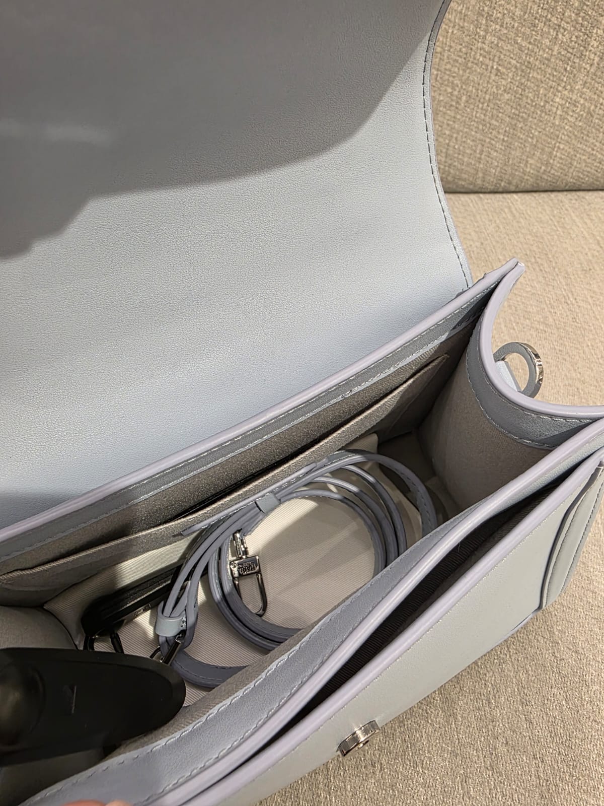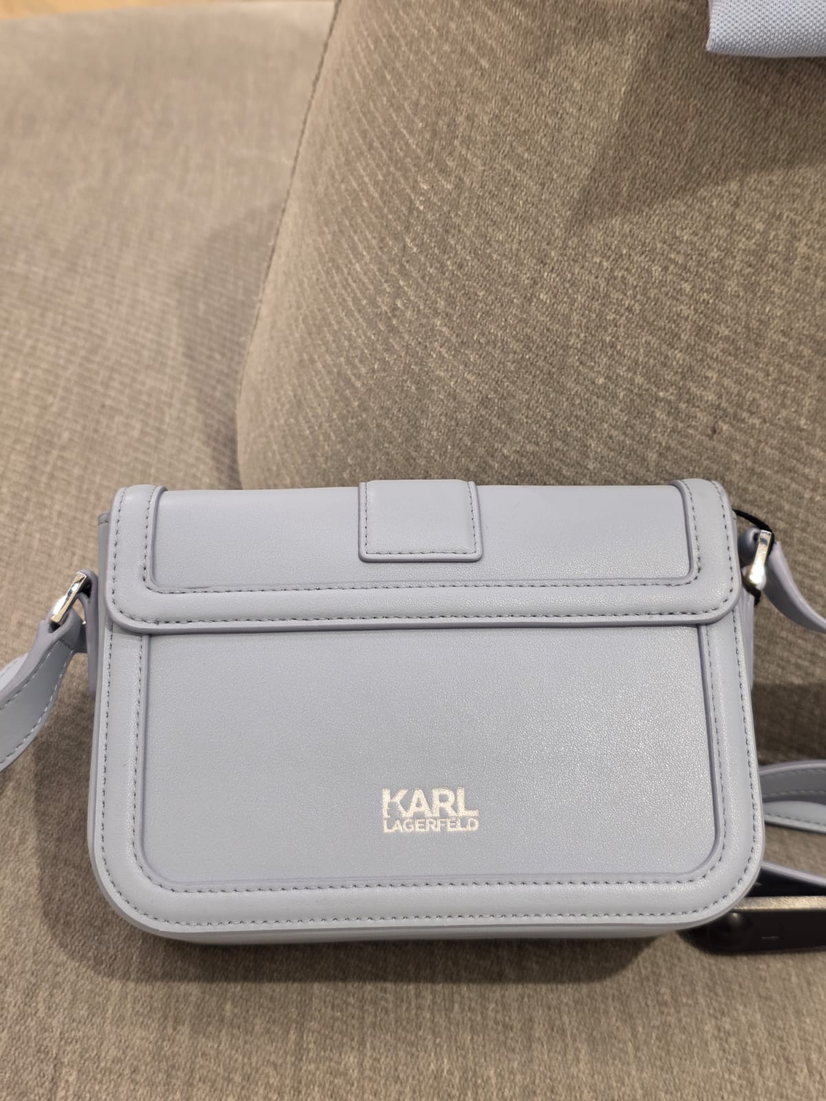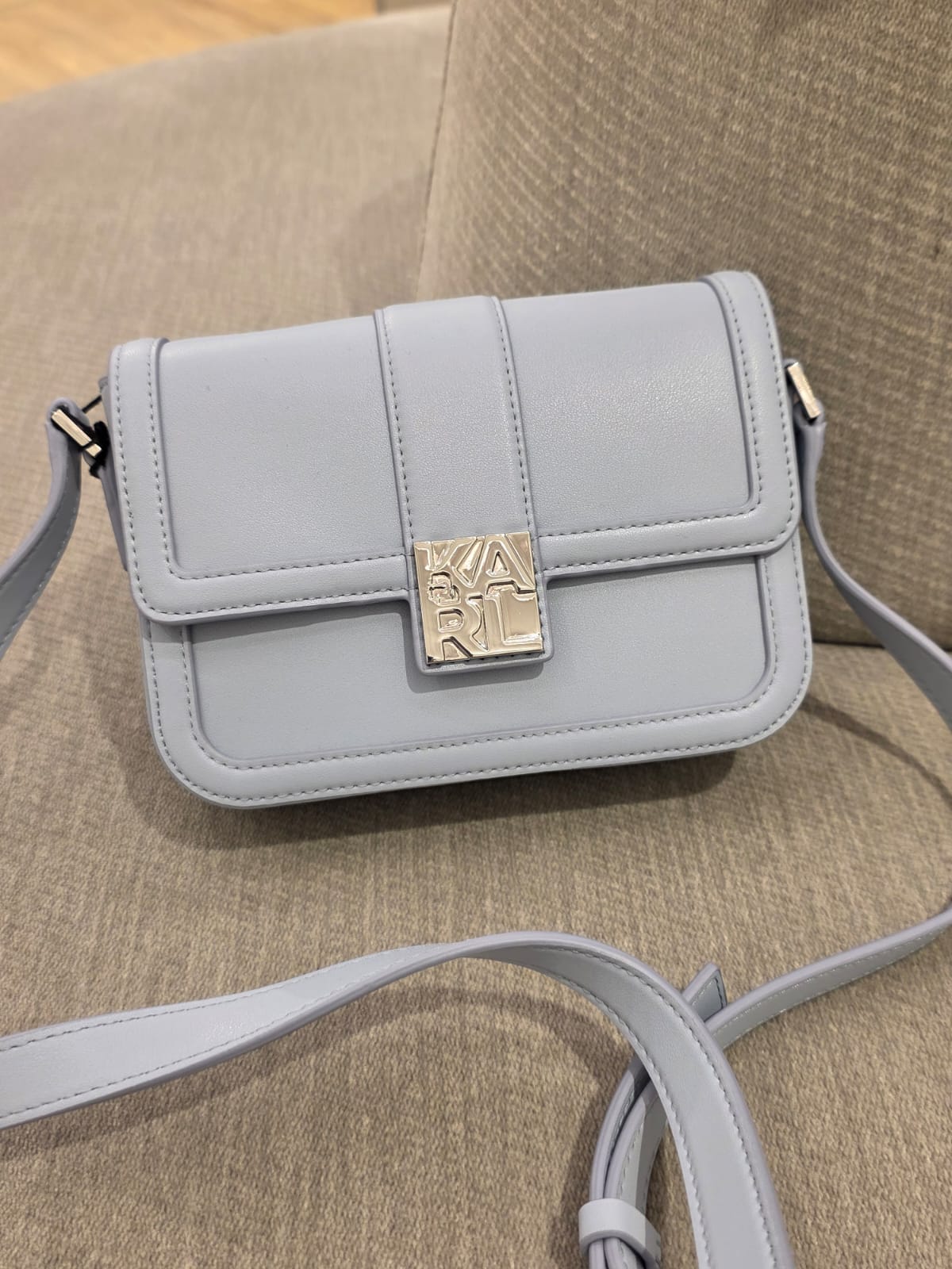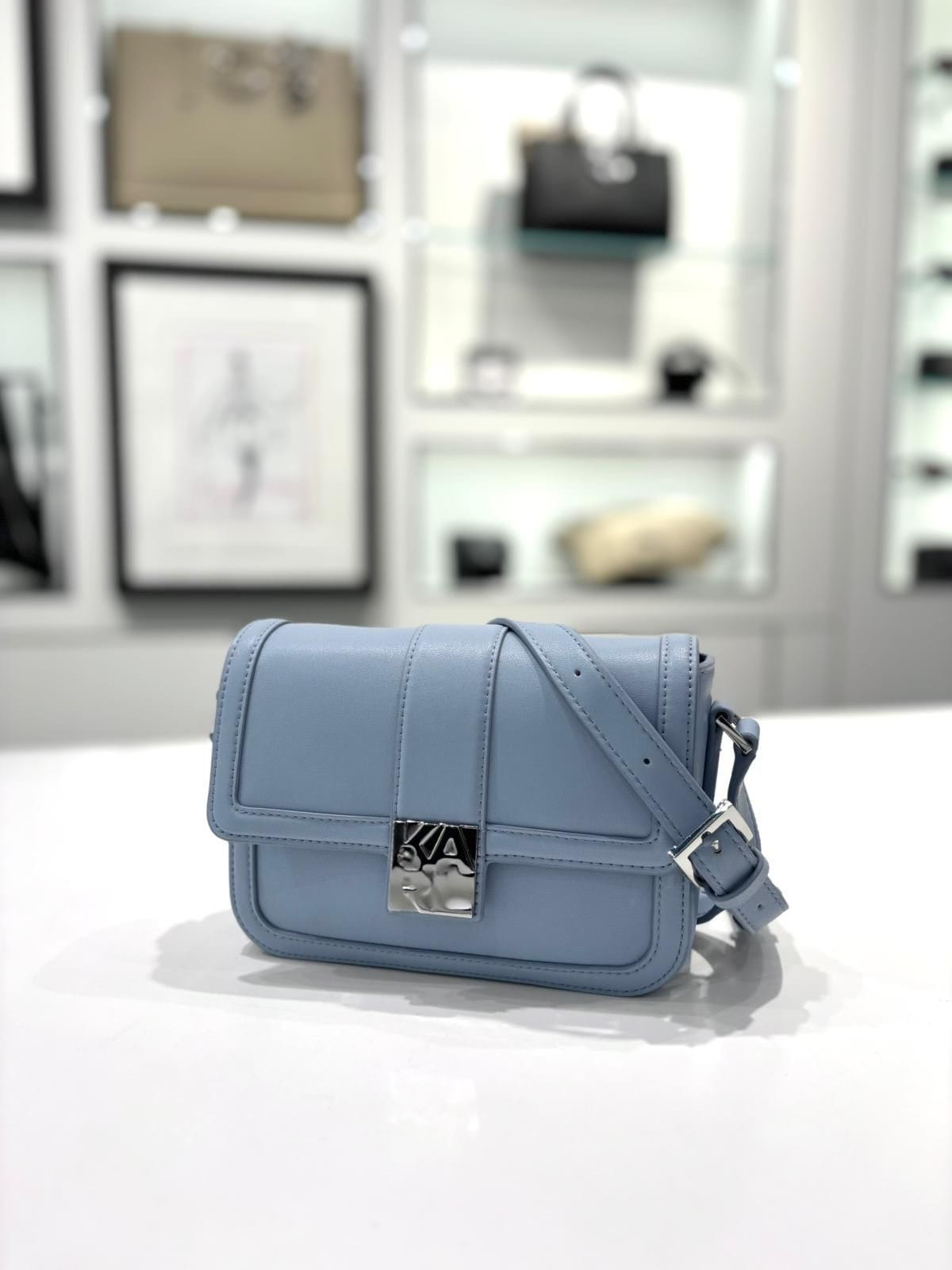Elegancka torebka Karl Lagerfeld K/Block Logo Crossbody w subtelnym odcieniu Kentucky Blue. Minimalistyczna forma, srebrne okucia i nowoczesne zapięcie z logo marki tworzą stylowy model idealny na co dzień. Lekka, kobieca i wygodna — świetnie komponuje się z bielą, czernią i jeansem.