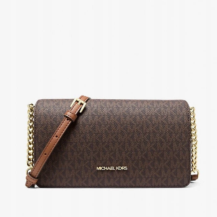 Michael Kors Jet Set Medium Signature Logo Crossbody w wersji Brown Monogram to model, który od lat pozostaje jedną z najbardziej rozpoznawalnych i uniwersalnych propozycji marki. Klasyczne połączenie brązowego logowanego wzoru MK z ciepłym odcieniem paska i złotymi detalami tworzy elegancką, ponadczasową całość, która doskonale wpisuje się zarówno w codzienne stylizacje, jak i bardziej uporządkowany, kobiecy look.